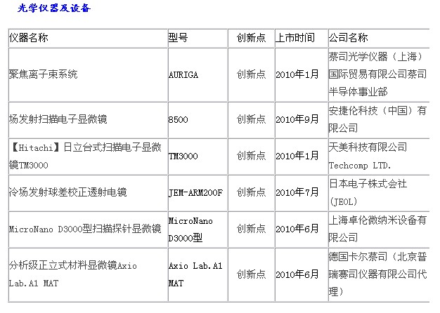 2010科學儀器優(yōu)秀新品入圍名單:物性測試儀器、光學儀器