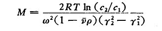 式中R是氣體常數(shù);T是絕對溫度;s是分子的沉降系數(shù);ν是分子的微分比容(當(dāng)一克溶質(zhì)加到一個大體積的溶液中所占有的體積);ρ是溶劑的密度以及c2和c1是溶質(zhì)在距旋轉(zhuǎn)中心的γ2和γ1位置上的濃度。