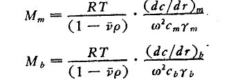 式中R=氣體常數(shù);T=絕對溫度;s=分子的沉降系數(shù);ν=分子的微分比容;ρ=溶劑的密度;dc/dr=大分子的濃度梯度;γm和γb分別代表管子彎月面和管底的輻射距離;cm和cb=分別代表在管于彎月面和管底大分子的濃度;Mm和Mb分別代表在管子彎月面和管底所得到的分子量的數(shù)值。