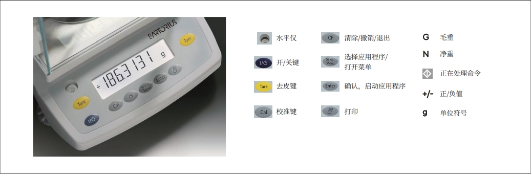 - 【注:BSA 系列天平內(nèi)置多種應(yīng)用程序,如稱重、密度測(cè)定、百分比、計(jì)數(shù)、不穩(wěn)定條 件稱量(動(dòng)物稱量)、凈重 - 總重、求和、系數(shù)換算、稱量單位切換等,用戶可以根據(jù) 需要在菜單中選擇所需程序,并按提示進(jìn)行進(jìn)一步操作!