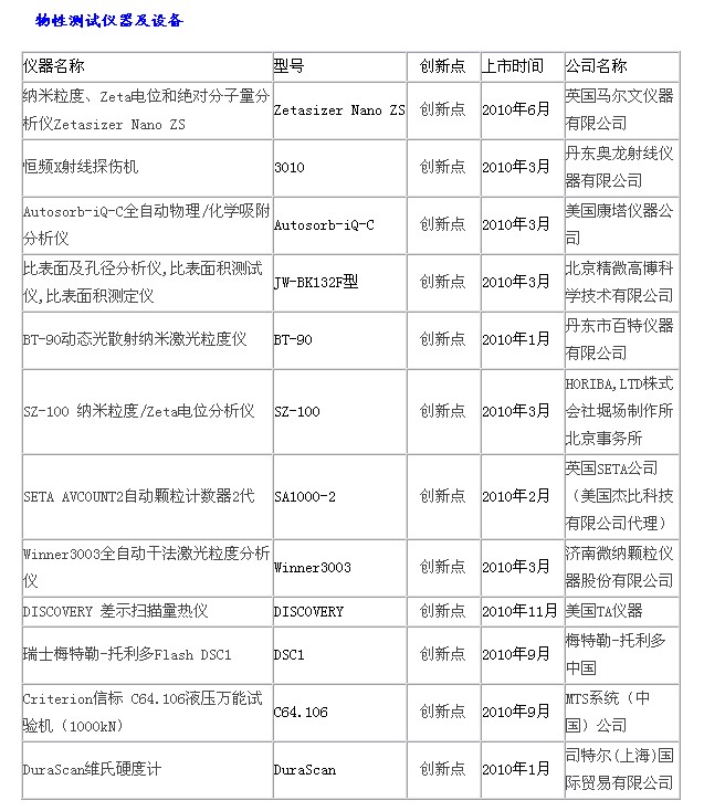 2010科學儀器優(yōu)秀新品入圍名單:物性測試儀器、光學儀器