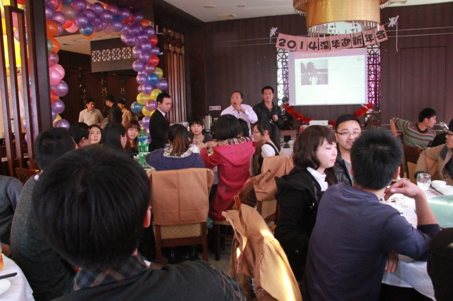 廣州市深華生物技術(shù)有限公司總經(jīng)理張清杰先生首先上臺(tái)致新年賀詞,張總回顧了我們深華公司2013年的心路歷程,肯定了2013年各部門的工作也分析了2013年的得失,同時(shí)感謝那些還奮斗在前線工地及各研究院校第一線而沒有趕來(lái)參加年會(huì)的同事們,廣州深華公司的發(fā)展離不開同事們的努力也離不開各位廠家和經(jīng)銷商的支持。