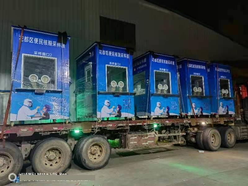 5月23日,花都區(qū)添置第一批5個(gè)專用核酸采樣屋,分別放置在來又來商場、新世紀(jì)廣場、融創(chuàng)樂園、雅樂城廣場、花東市場,當(dāng)天下午3時(shí)正式投入使用,受到市民群眾的熱烈歡迎,這也是 廣州市第一批專用核酸采樣亭。